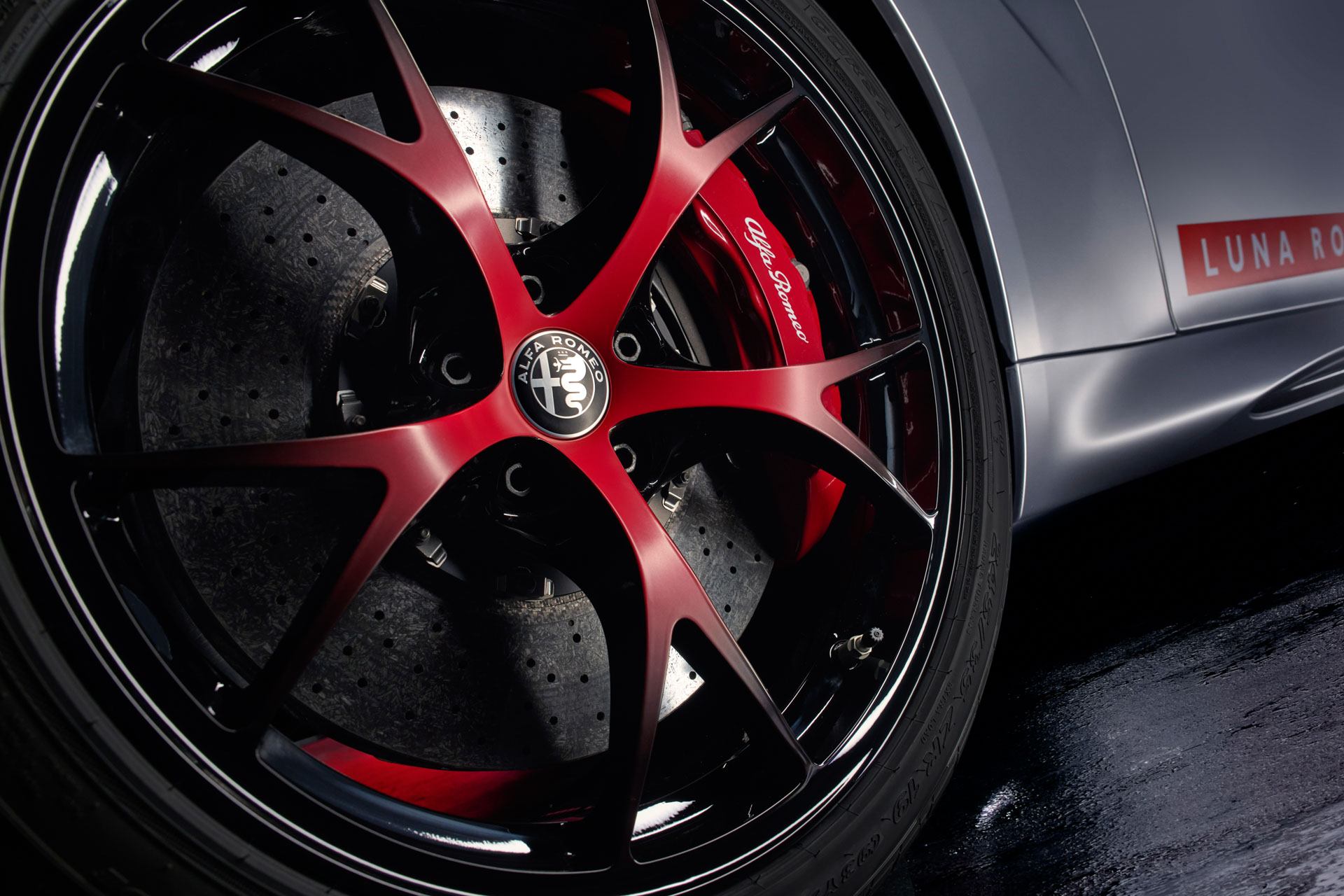 Auch optisch ist die Luna Rossa klar als Sondermodell erkennbar. Der von Hand aufgetragene Lack imitiert einen Metalleffekt, dazu kommen rote Akzente, „Luna Rossa“-Schriftzüge und erstmals Alfa Romeo Logos mit rotem Hintergrund. Auffällig: rot lackierte 19-Zoll-Leichtmetallräder sowie sichtbare Kohlefaser an ausgewählten Bauteilen.