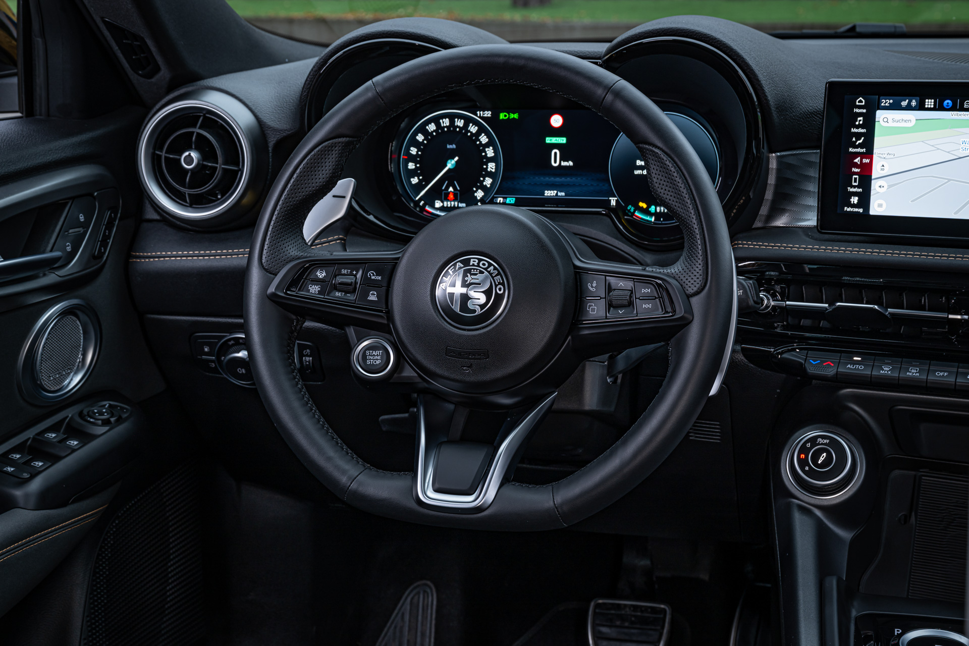 Innen wurde gezielt nachgelegt: neue Materialien, eine modernisierte Mittelkonsole mit Drehschalter und – je nach Variante – Ledersitze mit Heizung und Belüftung. Das digitale Cockpit kombiniert 12,3-Zoll-Instrumente mit einem 10,25-Zoll-Touchscreen (Alfa™ Connect) und Smartphone-Integration. Komfort-Features wie induktives Laden und Zwei-Zonen-Klima (je nach Ausstattung) machen den Tonale in Hamburg auch im Alltag überzeugend.a